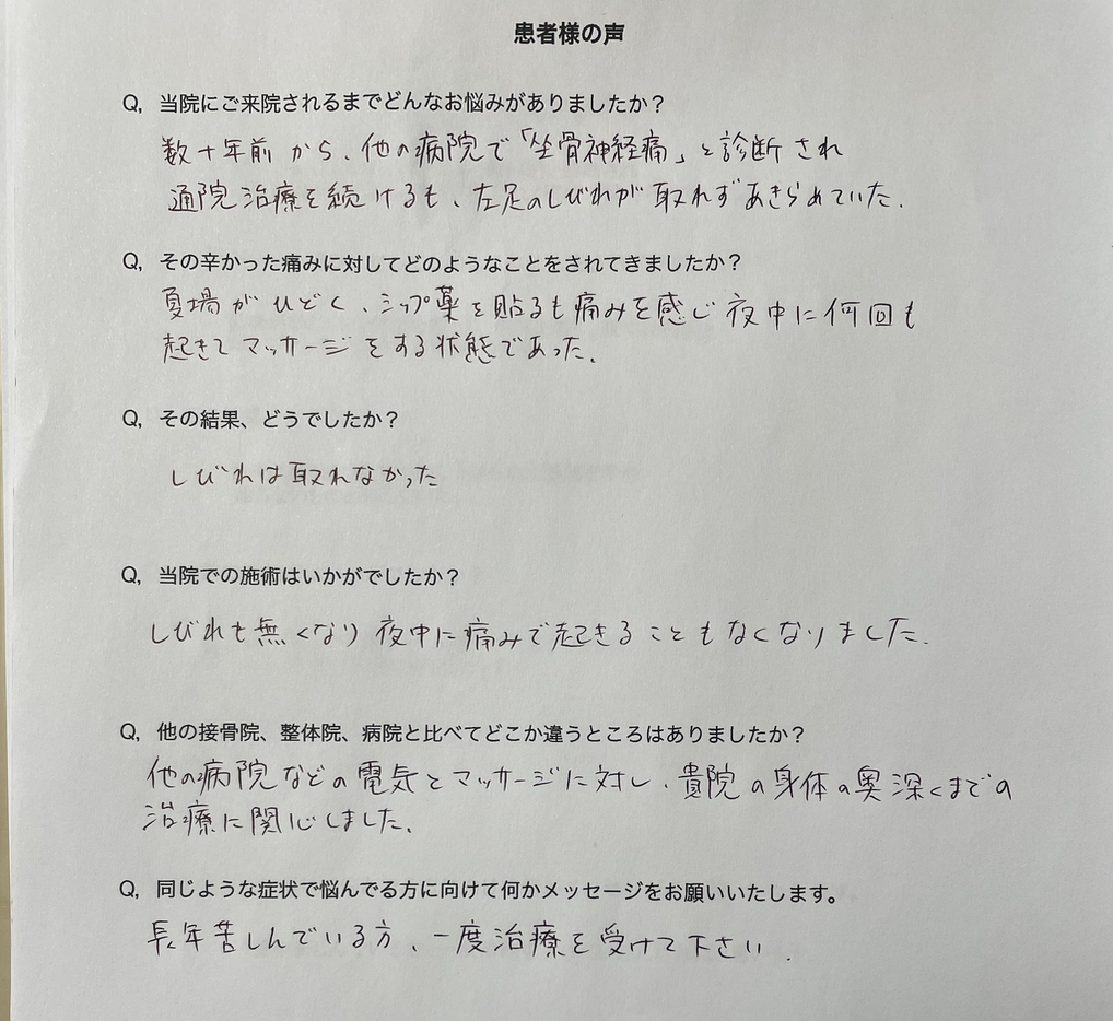 何をやってもダメだった痺れがまったく無くなりました!