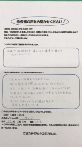 本日は患者様の声をいただいたのでご紹介いたします。