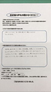 初回の治療で肩の可動域は上がり、治療を重ねるごとに痛みも気にならなくなってきたと喜んでおられました。